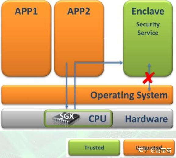 在区块链中应用TEE,是通过CPU来隔离一块安全区域来实现,对于Intel CPU这块安全区域称为Enclave(飞地)。