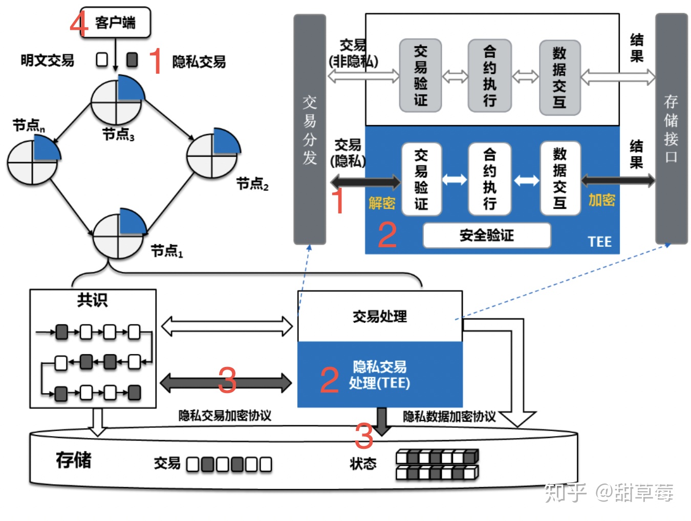 - 数据加密传输协议:确保交易数据端到端的隐私安全,交易数据从客户端加密发出后,仅在需要的时候载入TEE环境进行解密运算