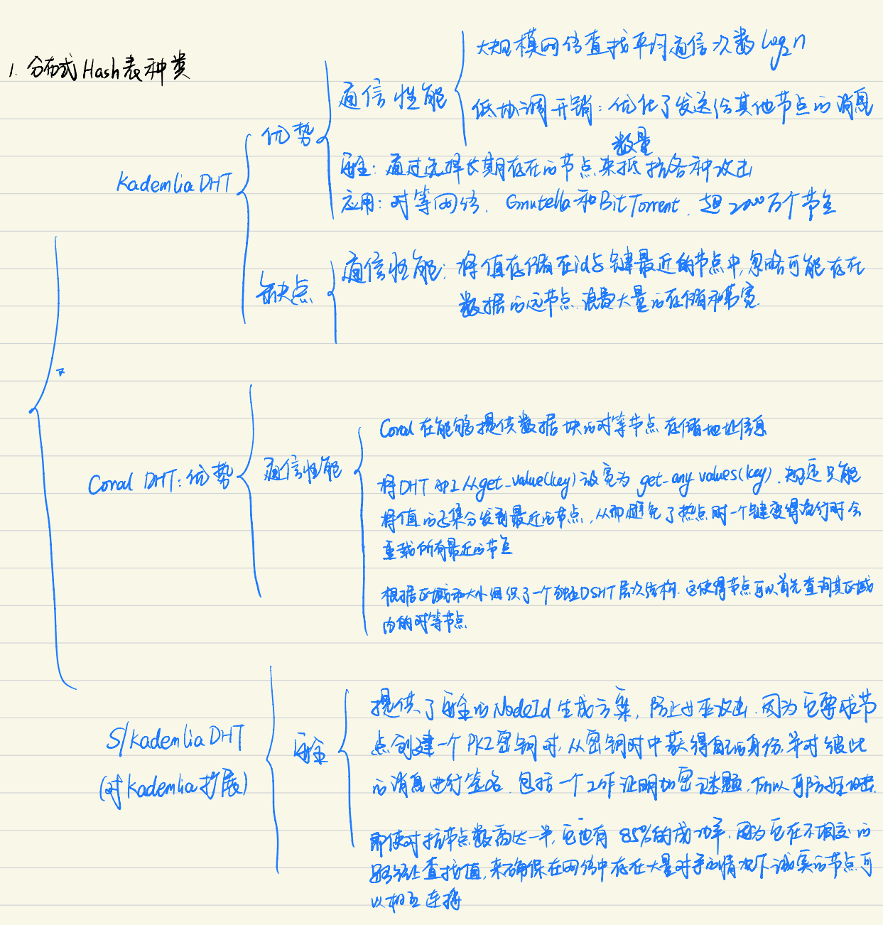 - 【通信性能】Kademlia将值存储在id与键最接近(使用XOR-distance)的节点中。这并不考虑应用程序数据的局域性,忽略可能已经拥有数据的远节点,并不管最近节点是否需要这份数据而去强制它们存储数据。这浪费了大量的存储和带宽。相反,Coral在能够提供数据块的对等节点存储地址信息