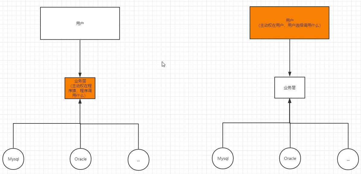 之前,程序是主动创建对象,控制权在程序猿手上。