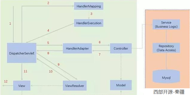 Controller(控制器):接收用户请求,委托给模型进行处理(状态改变),处理完毕后把返回的模型数据返回给视图,由视图负责展示。 也就是说控制器做了个调度员的工作。